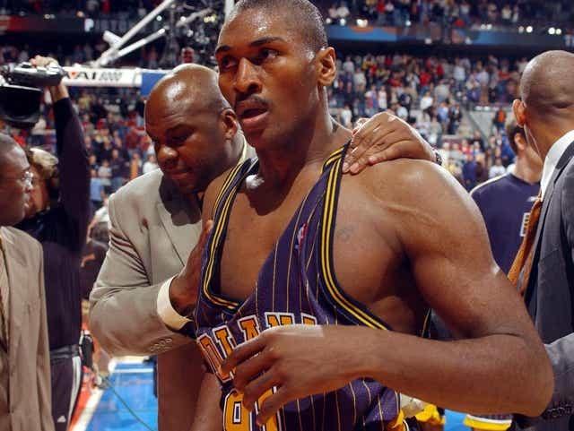 2004年11月19日,比赛还剩45.9秒,活塞落后步行者15分,比赛胜负已经没有悬念。活塞中锋大本试图扣篮时,阿泰斯特的犯规动作过大,招致本的不满。他重重地推了阿泰斯特一把,阿泰被劝到场边,他躺在裁判席上冷静的时候,一个球迷把饮料杯丢在阿泰的身上,直接激怒了阿泰。步行者球员和活塞球迷也发生冲突,双方9名球员累计被禁赛140多场比赛。