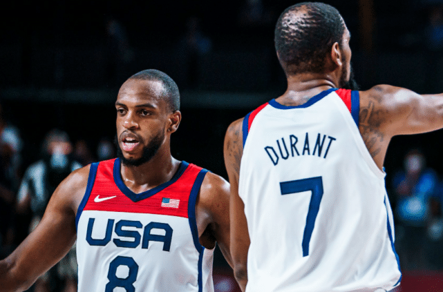 来源:24直播网08-07 16:0024直播网讯 北京时间8月7日,在东京奥运会男篮决赛中,由杜兰特率领的美国梦之队最终以87比82击败法国,完成复仇的同时并且夺得金牌!这场比赛,死神外线手感火热,上半场就狂砍21分,全场则是18中9送出29分6板3助攻。而法国这边,戈贝尔和富尼耶都是空砍16分。
