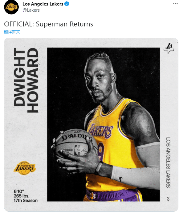 湖人官宣签约霍华德,欢迎超人归来。