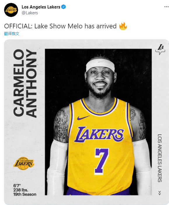 湖人官宣签约安东尼!改穿7号联手詹皇冲冠,全队号码全都出炉