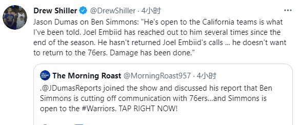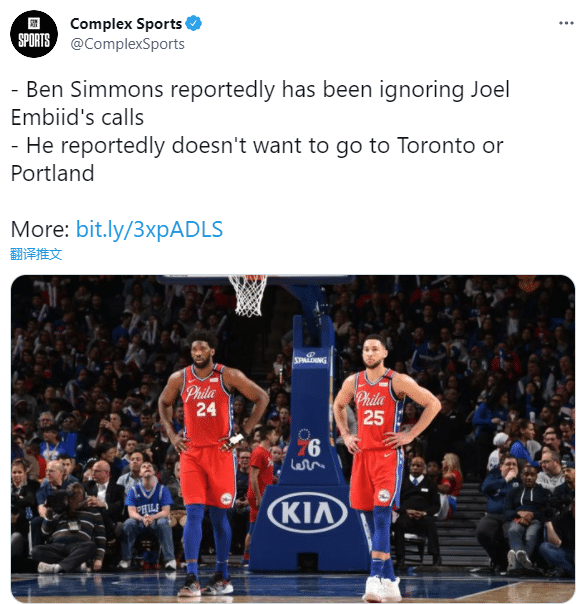 现在西蒙斯已经切断和76人队的直接联系,一切交流都是通过里奇-保罗进行的;另外恩比德曾多次尝试联系西蒙斯,最终的结果都是西蒙斯没有回恩比德的电话。