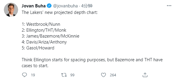 湖人阵容中12名球员分别是詹姆斯、浓眉、威少、纳恩、艾灵顿、塔克、贝兹莫尔、麦金尼、安东尼、阿里扎、霍华德和小加索尔;目前湖人阵容中有12名球员,需要缴纳2660万美元的奢侈税,等到湖人填满阵容名单,预计将会创造湖人队史最大的4230万美元的税单。