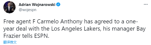 之后安东尼发推,正式宣布加盟湖人:梅隆与湖人Logo合在一起。