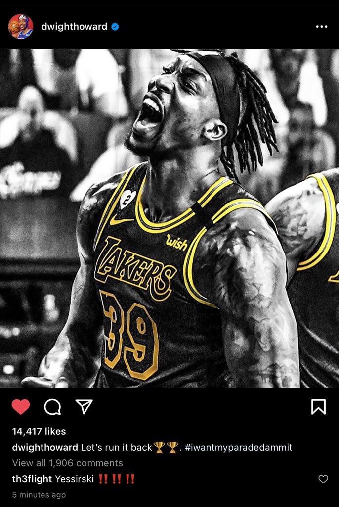 19-20赛季,由于受到疫情的影响,湖人无法举办夺冠庆祝典礼;现在霍华德明确表示要冲击生涯第二冠,也是帮助湖人冲击队史第18座总冠军。