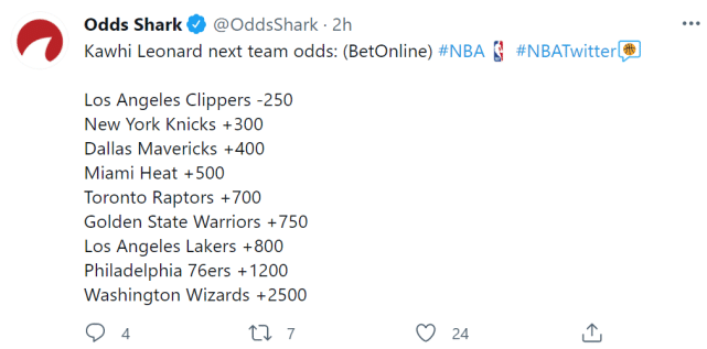 莱昂纳德下家最新赔率出炉!快船居首强势领跑 勇士第六湖人第七