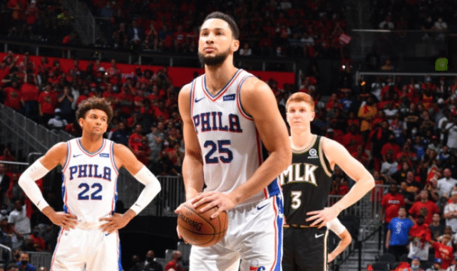 情场得意的西蒙斯,今年在球场上相当失意。西蒙斯在12场季后赛里场均11.9分7.9篮板8.8助攻,得分创季后赛生涯新低,投篮命中率62.1%,但罚球命中率只有34.2%。