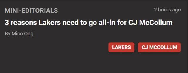如果届时37岁的詹姆斯把精力完全放在组织进攻上,麦科勒姆甚至可以成为第二得分点,帮助浓眉分担得分压力。他能完美匹配詹姆斯和浓眉。