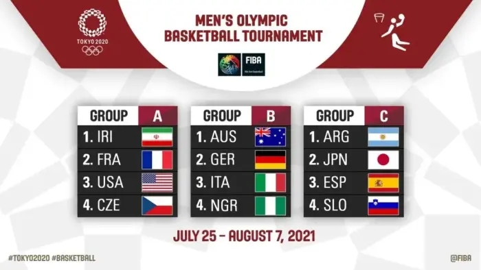 东京奥运会男篮赛制为12进8,每个小组的前2名直接晋级八强,剩余2个名额在三组中积分最高的两支队伍中产生。接下来的八强重新抽签,确定对手之后再进行淘汰赛。