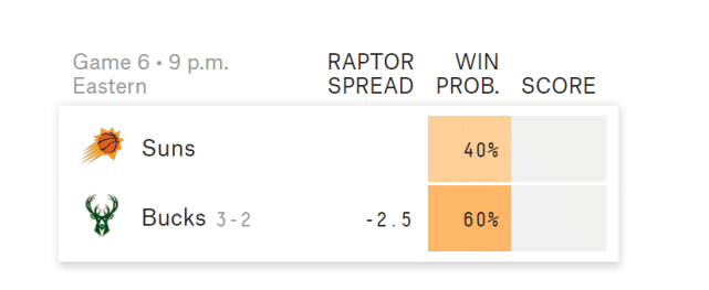 总决赛G6,将在北京时间7月21日开打,雄鹿将在主场迎战太阳。本赛季的季后赛,雄鹿主场胜率极高,达到9胜1负,数据网站FiveThirtyEight认为雄鹿有60%的几率赢下G6,结束这轮系列赛。