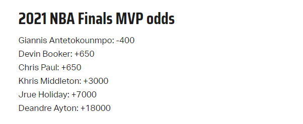 最新总决赛MVP赔率出炉!字母哥居首已遥遥领先 保罗布克并列第二