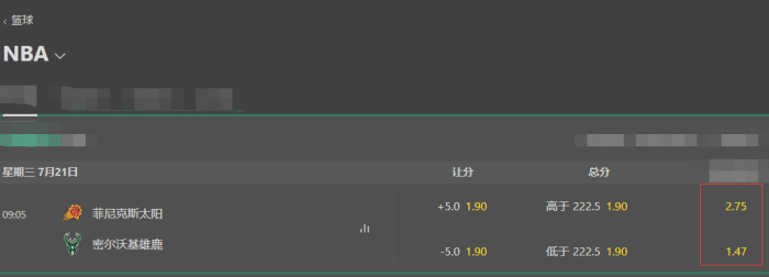总冠军最新赔率出炉!太阳疯狂暴跌恐没戏,雄鹿9胜1负主场太可怕