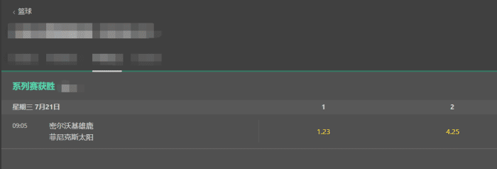 数据显示,雄鹿最新的夺冠赔率数字已经来到了疯狂1:1.23,而太阳则是1:4.25。这是一个相当悬殊的差距,相当于投入100,如果雄鹿拿到总冠军,你只能收到23的奖励;如果太阳最终拿到总冠军,你能收获325的奖励。毫无疑问,太阳拿到总冠军已经是小概率事件。