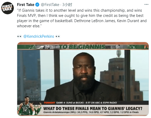 帕金斯还表示,如果字母哥碰巧赢得总冠军和FMVP,我会像之前对待库里那样公开道歉,米德尔顿仍然是蝙蝠侠。