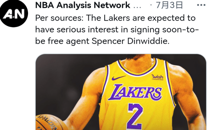 情归湖人?丁威迪晒训练动态,球馆紫金配色,或联手詹姆斯冲冠