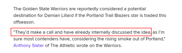 勇士内部讨论交易利拉德!潜在报价筹码曝光,三队有实力加入竞争