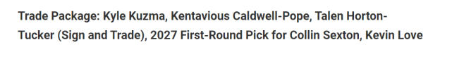 2020-21赛季,塞克斯顿在骑士展现了自己的进步,场均贡献24.3分3.1篮板4.4助攻,投篮命中率47.5%,三分命中率37.1%。他是一个进攻强于组织的后卫。那么,湖人能用什么样的筹码换来塞克斯顿呢?美媒Fadeaway World近日建议了一笔4换2的交易,湖人送出库兹马、波普、霍顿-塔克(先签后换)和2027年首轮签,得到骑士的乐福和塞克斯顿。