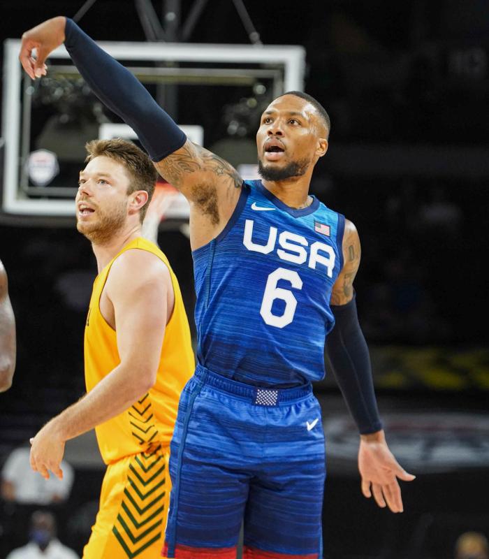 来源:24直播网07-13 10:3324直播网讯 北京时间7月13日,美国男篮不敌澳大利亚,利拉德全场15投8中、三分11投6中拿到22分,杜兰特投进4记三分拿到17分;美国男篮第三节一度被打19-6攻势,末节最后4分30秒全队仅仅拿到1分,被打11-1输掉比赛,利拉德末节0分,KD和利指导投进10记三分合砍39分仍输球。