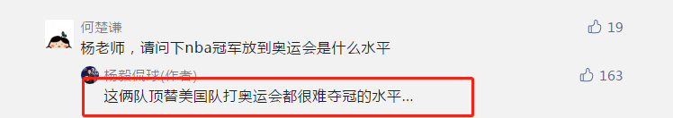 有球迷表示,“请问NBA总冠军放到奥运会是什么水平”,杨毅的回应很直接,“很难夺冠的水平”。仔细想想,可能也确实是这样,梦八和梦十大牌如云,科比和詹姆斯都在巅峰,但西班牙队,还是给梦之队制造了一些麻烦。而如果太阳和雄鹿代替梦之队打奥运会,可能真打不过西班牙,不是阵容不够强,而是想加索尔,卢比奥,费尔南德斯等球星,都太擅长打国际比赛了。