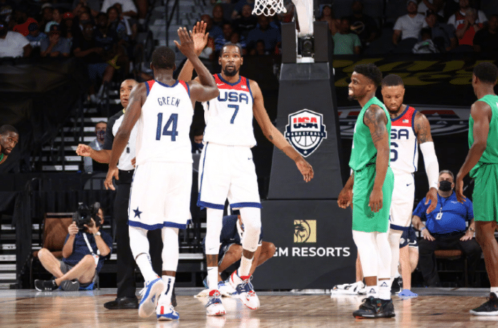 来源:24直播网07-12 17:4924直播网讯 近期,梦之队出师不利,在热身赛中,爆冷输给了尼日利亚队,后者虽然也有多位NBA球员,但实力和美国队相比,还是差了一大截。即便实力悬殊很大,但尼日利亚队还是啃下了这块难咬的骨头。而波波维奇的美国队,则成为笑柄,甚至,外界给领袖杜兰特P上了尼日利亚的球衣,作为笑料调侃。