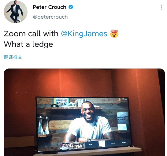 来源:24直播网07-08 10:4824直播网讯近日,前英格兰国脚前锋彼得-克劳奇在社交媒体上晒出了一张自己和NBA球星詹姆斯视频畅聊的照片,配文" 和詹姆斯的Zoom通话。多么好看的壁挂。"