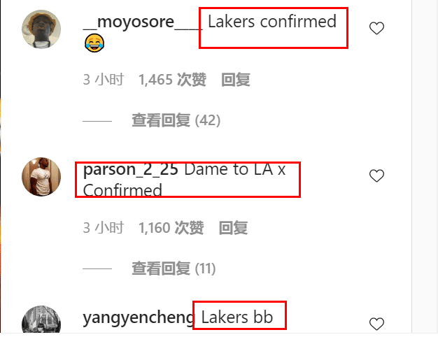 这张照片的背景是斯台普斯中心,而且是明显的湖人紫金配色。很快,不少球迷在利拉德的评论区写道:“利拉德确认去湖人了。”美媒clutchpoints也凑热闹点评道:“利拉德是在暗示他的下一站是湖人吗?湖人球迷肯定这么想。”