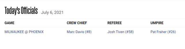 53岁的马克-戴维斯已经在NBA执哨23个赛季,生涯至今,他已经吹过14场总决赛,在今年的总决赛裁判中仅次于斯科特-福斯特(20场)。马克-戴维斯给人的感觉是不大好沟通,NBA球员曾票选最不喜欢的裁判,马克-戴维斯的得票率排在第三,仅次于福斯特和布拉泽斯。马克-戴维斯吹了西决的第3战和第6战,太阳1胜1负,吹了东决第3战,雄鹿获得胜利。