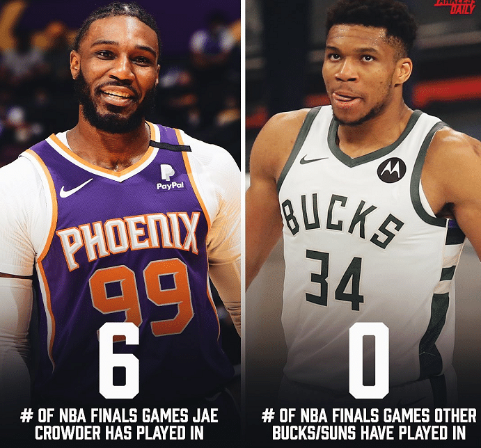 太阳和雄鹿两支球队不论谁夺冠,都是新王当立,其中很重要的一点就是两队球员的总决赛经验都不多,太阳方面本赛季从热火引进了克劳德,他上个赛季打了6场总决赛,其他太阳的任何球员都没有总决赛的经验,包括36岁保罗是第一次总决赛之旅,布克和艾顿等一直在太阳效力的球员更是第一次打季后赛。