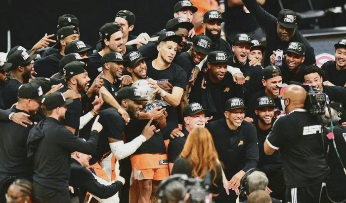 所以说雄鹿和太阳两队加起来只有克劳德有过6场总决赛的经验,双方大部分的球员都会去到一个相对陌生但期盼已久的舞台。对比上个赛季,热火和湖人打进总决赛,仅仅湖人的球员们加起来就有多达123场总决赛经验,其中的代表性人物是詹姆斯,他一个人就有过43场总决赛经验。热火方面伊戈达拉有33场总决赛的经验,两队加起来有156场总决赛的经验。