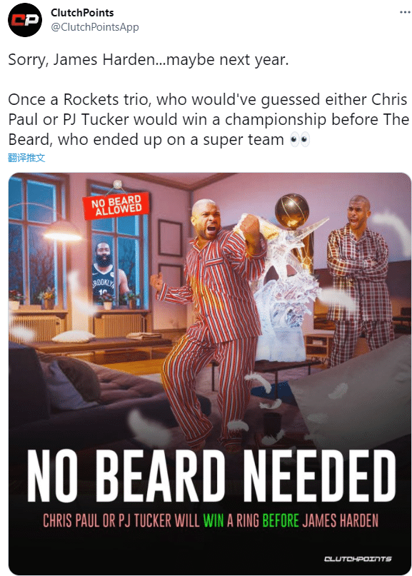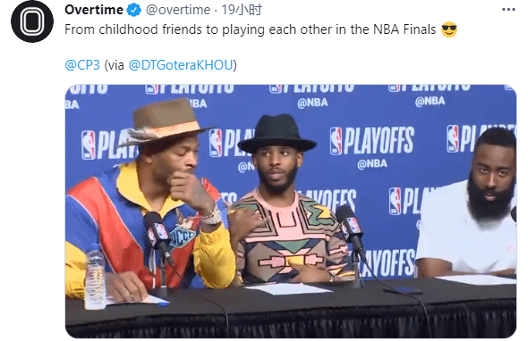 此前美媒Overtime晒出哈登、保罗和塔克三人一起接受采访的画面,当时保罗和塔克有说有笑,而哈登坐在一旁面无表情,这一幕太符合今年总决赛的情况,美媒写道:从儿时玩伴到一起打进总决赛。