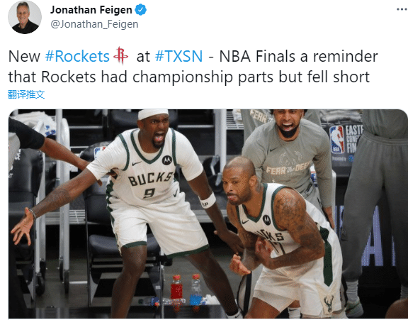 昔日火箭两大帮手保罗和塔克争夺冠军扎心哈登;对于今年总决赛的情况,火箭跟队记者费根发推:NBA总决赛提醒人们火箭曾有过夺冠拼图,但他们从未实现目标。