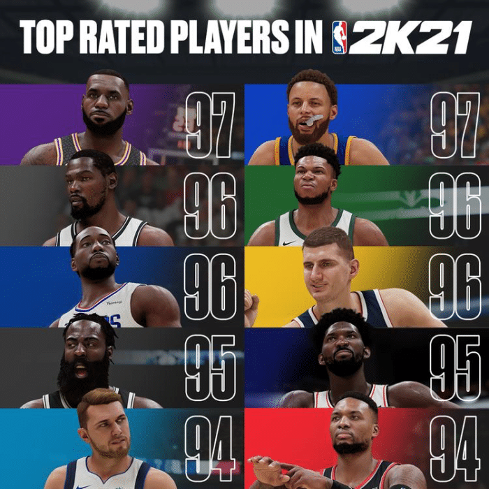 NBA2K21能力值排名更新:杜兰特仅排第三,詹姆斯仍高居榜首