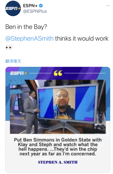 史密斯说出这番话的时候也不知道有没有经过大脑的思考,可能他只是站在76人的角度出发,希望能够尽快换走西蒙斯以增强实力。然而勇士这边根本就不太需要西蒙斯,别说西蒙斯可以和库里以及汤普森一起夺冠,面对西蒙斯这个根本没有半点投射能力的球员,就算是库里和汤普森这样的神射手也带不动。