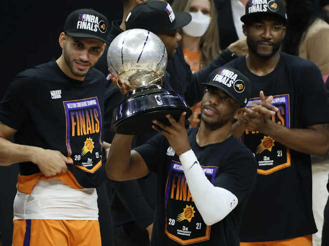 在西部冠军颁奖典礼上,保罗第一个捧起西部冠军奖杯,然后他把奖杯递给蒙蒂-威廉姆斯,太阳主帅是第二个高居奖杯的;众所周知,保罗和蒙蒂的关系十分亲密,从昔日黄蜂(现改名为新奥尔良鹈鹕)到菲尼克斯太阳,师徒重聚演绎黑马逆袭。