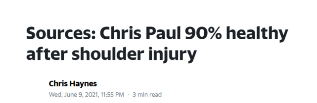 太阳神医?曝保罗肩伤已90%康复!掘金后卫连缺20场终迎复出