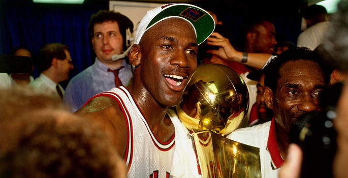 如你所知,第一次总是痛并快乐着。单就个人而言,捅破那层该死的窗户纸后,乔丹变得愈发游刃有余,连续第6度登上得分王宝座,并收获了个人第3樽常规赛MVP奖杯。稍有不同的是,这个时候的乔丹已然不再执拗地认为自己能搞定一切,比任何一个赛季都更加信任队友们——30.05分,这是他6次得分王中场均得分最低的一次。而在第一次总冠军体验的沐浴下,公牛在61胜的基础上再上台阶,豪取全联盟最好的67胜,一举刷新了队史最佳战绩。