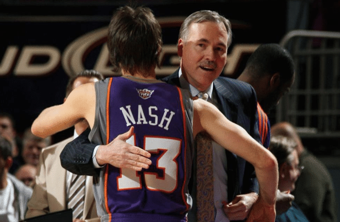 德安东尼在去年休赛期选择加盟篮网,作为一名助教辅佐前弟子纳什。纳什毕竟是一名菜鸟教练,所以不少球迷认为德安东尼在本赛季给予了纳什很大的帮助,篮网常规赛轰出了历史第一的进攻效率,德安东尼显然也在其中扮演了很重要的一个角色。