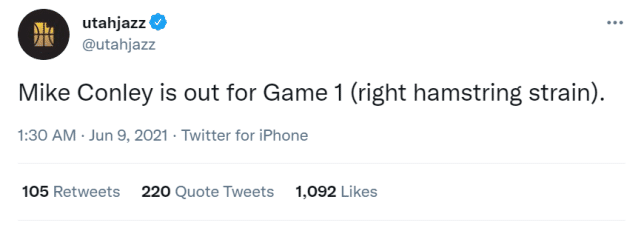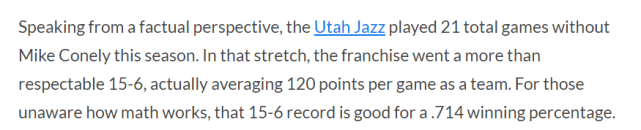 从常规赛战绩来看,爵士在康利缺阵的情况下依然强势,康利缺席21场比赛,爵士15胜6负,胜率达到71.4%,场均还能轰下120分。不过,常规赛毕竟只是常规赛,季后赛的强度完全在另一个级别上。缺少康利,就需要爵士其他后卫挺身而出。