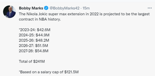5年2.41亿美元!约基奇明年可签超级顶薪,专家:NBA史上最大合同
