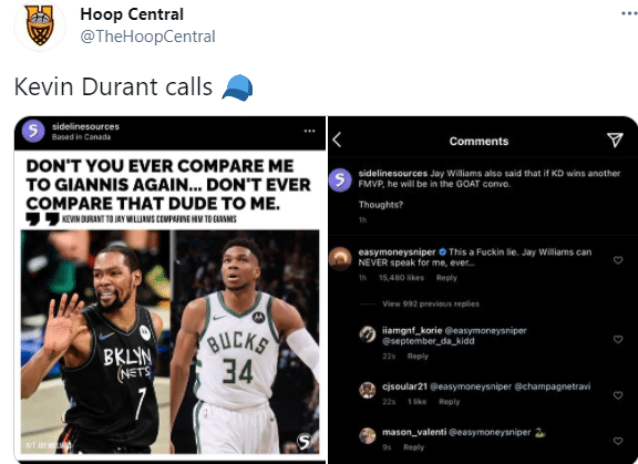 不久前,杜兰特澄清“别拿字母哥跟我比”的争议言论,杜兰特怒喷杰-威廉姆斯:这是一个该死的谎言,你永远不能代表我说话,永远不能。
