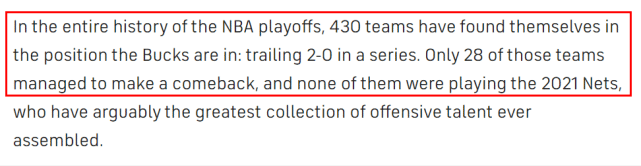 雄鹿0-2还有戏吗?430队仅28队翻盘,美媒:那些对手可不是这支篮网
