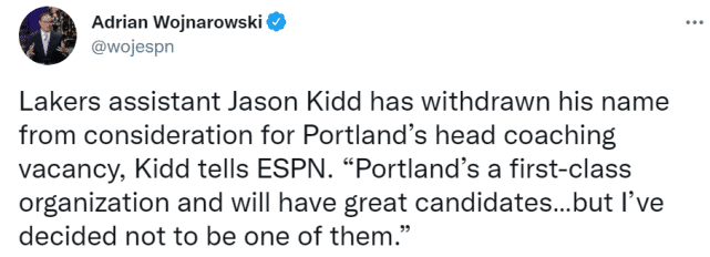 利拉德愿望破灭!基德宣布退出开拓者主帅竞争,四大候选人已出炉