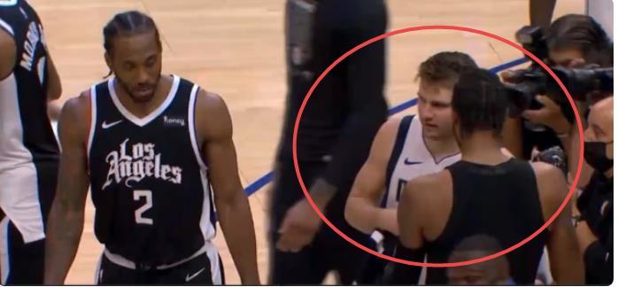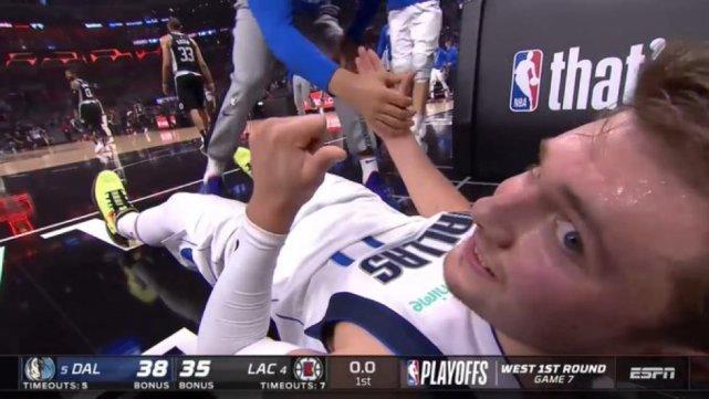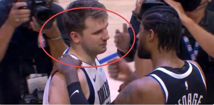 在输球被淘汰后,东契奇还是很有礼貌地和老大哥们互动,老大哥乔治也是很照顾这个帅气的小老弟。在一番交谈之后,乔治撩的东契奇是花枝乱颤,随后,乔治提出了和东契奇交换球衣,不过东契奇没有当场答案。