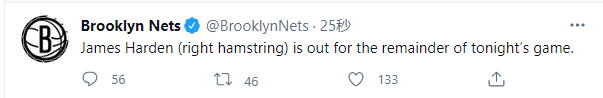 哈登伤退引热议!已离开球馆接受核磁检查,苏群:估计篮网要凉了