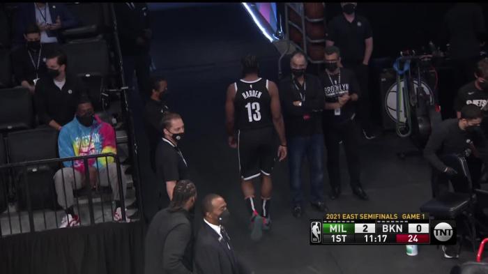 东部分区半决赛G1,哈登开场遭遇伤病,捂着大腿离场并返回更衣室,并且第一时间离开巴克莱中心去做进一步的检查,哈登是腿筋伤势复发,常规赛期间他就是右大腿这个位置受伤。