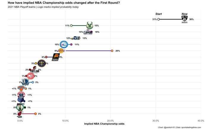 来源:24直播网06-03 15:5224直播网讯 季后赛开打至今,湖人夺冠概率急剧下滑,从20%下滑到9%,是所有冲冠球队中夺冠概率下滑最明显的,篮网、雄鹿以及太阳等队的夺冠概率都有所提升,其中篮网夺冠概率36%高居联盟第一。