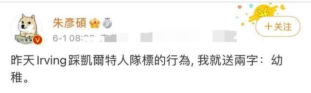 欧文和凯尔特人的恩怨在效力凯尔特人的两年里产生,在欧文的带领下,凯尔特人没有什么成就,但是欧文的种种行为让凯尔特人不满,比如说著名的“who cares”,以及“我还要继续出手”等等行为,都让欧文成为凯尔特人的公敌,效力两年后,欧文承受不了绿军的期待,最终转会布鲁克林。这次季后赛中正面相遇,也让欧文有了报仇的机会,比赛赢得酣畅淋漓,打嗨了的欧文,对凯尔特人队标做出这样的动作。今天早上,国内名嘴朱颜硕微博发文:“昨天欧文踩凯尔特人队标的行为,我就送他两个字!幼稚!”