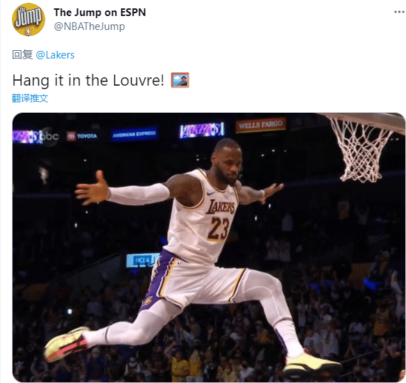 疯狂扣篮之后,詹姆斯在空中张开双臂的庆祝姿势同样十分霸气,美媒发推写道这该挂在卢浮宫;看到詹姆斯如此扣篮,大莫里斯双手抱头,一脸不敢相信的样子。