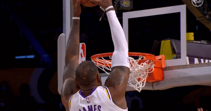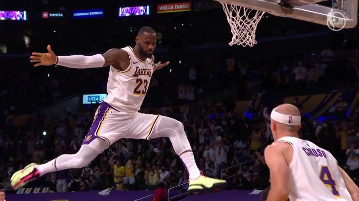 平筐砸扣!36岁詹皇炸裂空接引热议,空中疯狂庆祝+队友抱头不敢信