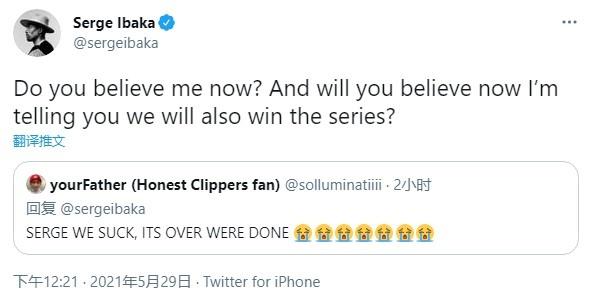 赛后的小卡和隆多均谦虚地表示我们现在只是赢下了一场,还没得到什么!但不妨碍他和队友们对于晋级有信心,本场未出战的伊巴卡预言本场快船胜,赛后再次发推“你现在相信我了吗?现在我告诉你,我们也将会赢下系列赛,你会相信吗?”