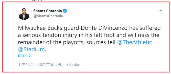 而在Shams报道了这则消息后,就有网友留言问:“迪文岑佐的报销,对于雄鹿影响多大”?